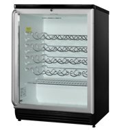 This Deluxe 50 Bottle Wine Cooler by Summit (models SWC6GBLSH and SWC6GWSH) stores up to 50 bottles of your favorite wine under ideal conditions, while the elegant glass door allows the world to see them. The professional style towel bar handle adds to the package. It's front vented, with finished sides, so you can install it free-standing or under a counter - it's up to you. This wine refrigerator meets commercial standards.This wine cellar is similar to the SWC6G, which lacks the towel bar handle.
